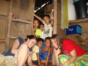 This is the room we slept in the first 2 nights - on woven mats atop the wood floor, under a blue mosquito net! It was pretty cold. But after sleeping on such hard surfaces, I don't like my own bunk bed.. I woke up sorer this morning than any Other morning this week! The precious little children were CONstantly peeking in, staring at what we were doing, even if we weren't doing much of anything! We went to their school in the evening and played "teacher" (i was the teacher =D) and, when it was time to leave, they struck up a song unexpectedly "goodbye my tea-cher, good-bye! goodbye me tea-cher, good-bye! It was incredible, aaaand made me want to actually bE their teacher. How cOOL would it be to be the village grade school teacher?! ..there's sO much to dO in life!